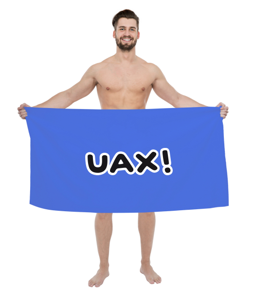 The original big towel imprinted with UAX! For printing big towels we use dye-sublimation technology guarantees excellent color saturation and an extensive range of colors. Big Towels UAX! We print on one side (the other side remains white and is used to blow-dry). One side of the big towel is 100% cotton for the drying of a second side big towel is 100% PES at that print printing! Wash at 60°C