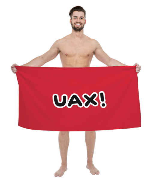 The original big towel imprinted with UAX! For printing big towels we use dye-sublimation technology guarantees excellent color saturation and an extensive range of colors. Big Towels UAX! We print on one side (the other side remains white and is used to blow-dry). One side of the big towel is 100% cotton for the drying of a second side big towel is 100% PES at that print printing! Wash at 60°C