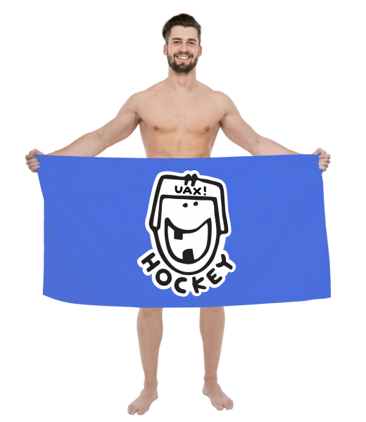 We make sustainable UAX clothing! - hand sewn in the Czech Republic uaxMen uaxCyclingTowelsPRINTED BIG TOWELSdesign 1098 - HOCKEYCAPRI BLUE