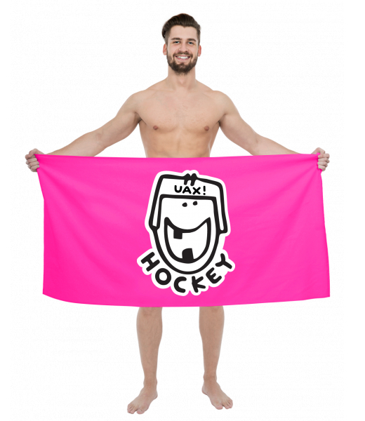 The original towel imprinted with UAX! Cycling for man with design 1098 HOCKEY in color FLUO PINK