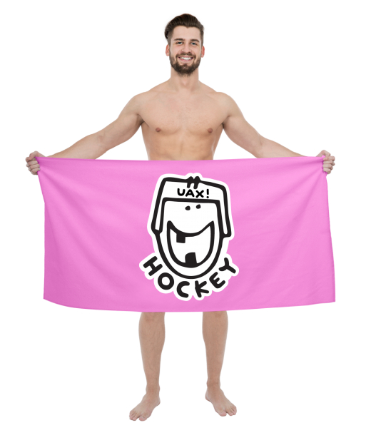 The original towel imprinted with UAX! Cycling for man with design 1098 HOCKEY in color INDIAN LILA