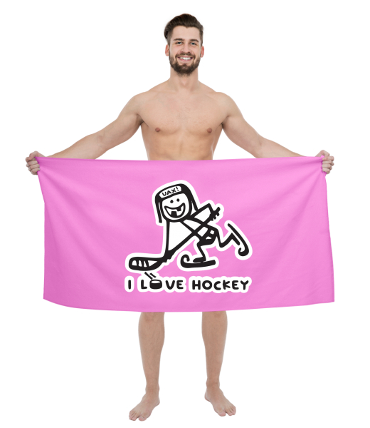 We make sustainable UAX clothing! - hand sewn in the Czech Republic uaxMen uaxCyclingTowelsPRINTED BIG TOWELSdesign 1100 - I LOVE HOCKEYINDIAN LILA