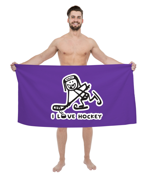 We make sustainable UAX clothing! - hand sewn in the Czech Republic uaxMen uaxCyclingTowelsPRINTED BIG TOWELSdesign 1100 - I LOVE HOCKEYVIOLET