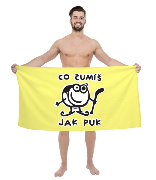 The original towel imprinted with UAX! Cycling for man with design 1101 ČUMÍŠ JAK PUK in color NEW YORK
