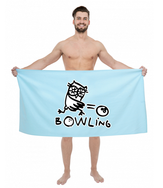 The original towel imprinted with UAX! Cycling for man with design 1103 BOWLING in color PASTEL BLUE