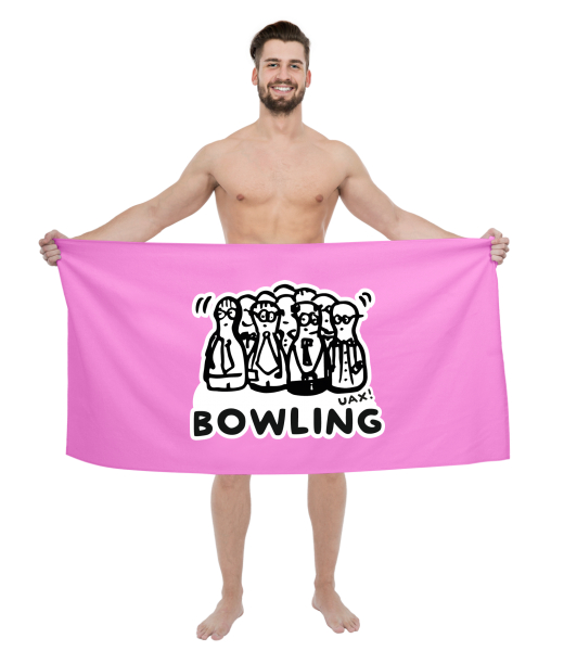 The original towel imprinted with UAX! Cycling for man with design 1104 BOWLING 2 in color INDIAN LILA