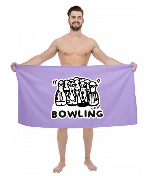 The original towel imprinted with UAX! Cycling for man with design 1104 BOWLING 2 in color LAVENDER