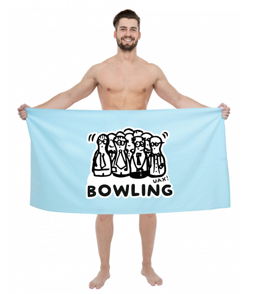 The original towel imprinted with UAX! Cycling for man with design 1104 BOWLING 2 in color PASTEL BLUE