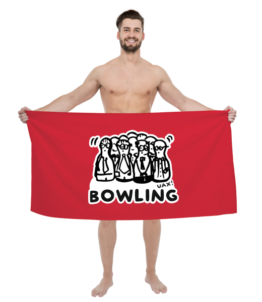 The original towel imprinted with UAX! Cycling for man with design 1104 BOWLING 2 in color RED
