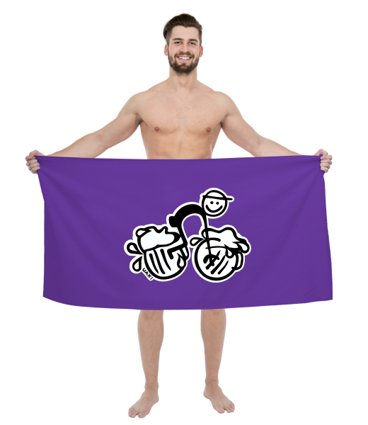 The original towel imprinted with UAX! Cycling for man with design 1110 BEER TOUR in color VIOLET