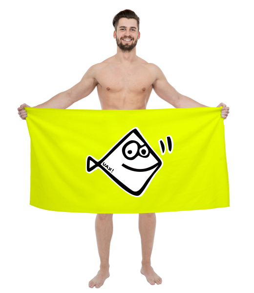The original big towel imprinted with UAX! For printing big towels we use dye-sublimation technology guarantees excellent color saturation and an extensive range of colors. Big Towels UAX! We print on one side (the other side remains white and is used to blow-dry). One side of the big towel is 100% cotton for the drying of a second side big towel is 100% PES at that print printing! Wash at 60°C
