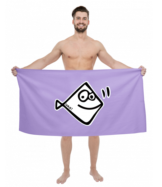 The original towel imprinted with UAX! Cycling for man with design 1111 PIRANHA in color LAVENDER