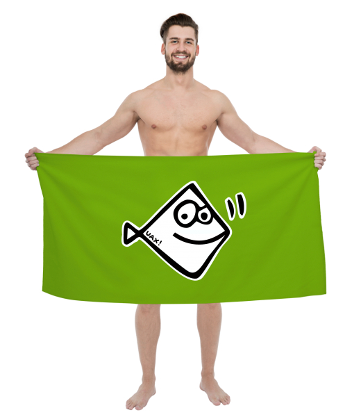 The original big towel imprinted with UAX! For printing big towels we use dye-sublimation technology guarantees excellent color saturation and an extensive range of colors. Big Towels UAX! We print on one side (the other side remains white and is used to blow-dry). One side of the big towel is 100% cotton for the drying of a second side big towel is 100% PES at that print printing! Wash at 60°C