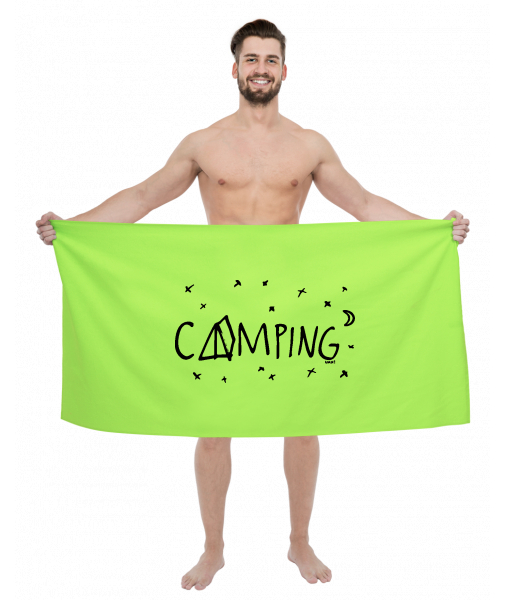 The original towel imprinted with UAX! Cycling for man with design 1112 CAMPING in color FLUO GREEN
