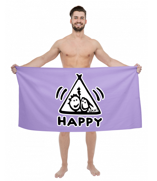 The original towel imprinted with UAX! Cycling for man with design 1113 HAPPY in color LAVENDER