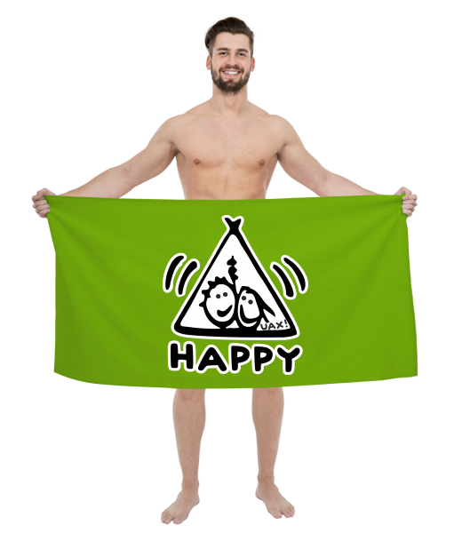 The original towel imprinted with UAX! Cycling for man with design 1113 HAPPY in color PARROT GREEN