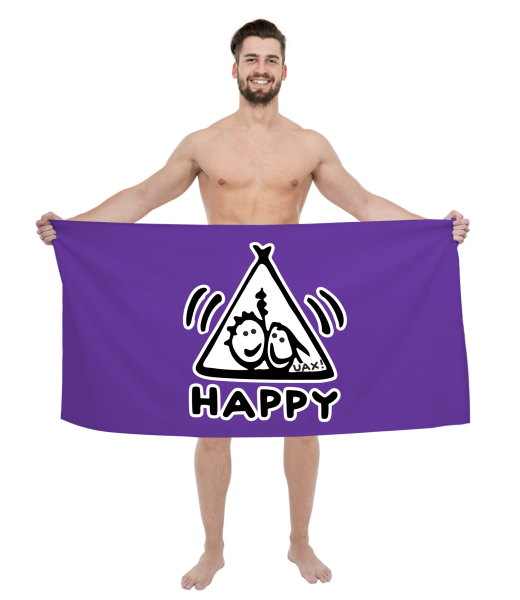 The original towel imprinted with UAX! Cycling for man with design 1113 HAPPY in color VIOLET