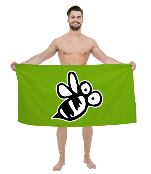 The original towel imprinted with UAX! Cycling for man with design 1114 BEE in color PARROT GREEN
