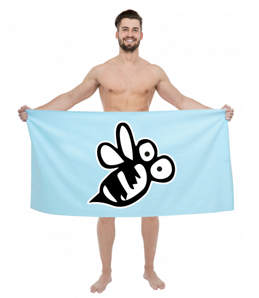 The original towel imprinted with UAX! Cycling for man with design 1114 BEE in color PASTEL BLUE
