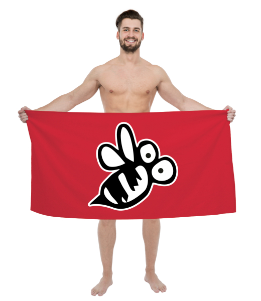 The original towel imprinted with UAX! Cycling for man with design 1114 BEE in color RED