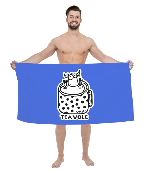 The original towel imprinted with UAX! Cycling for man with design 1124 TEA VOLE in color CAPRI BLUE