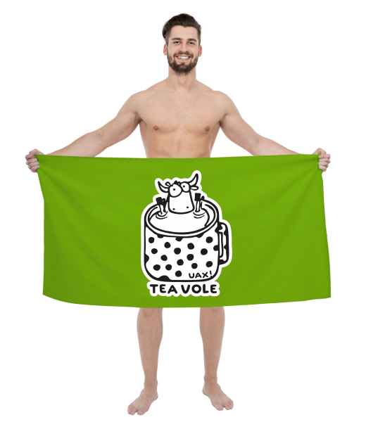 The original towel imprinted with UAX! Cycling for man with design 1124 TEA VOLE in color PARROT GREEN