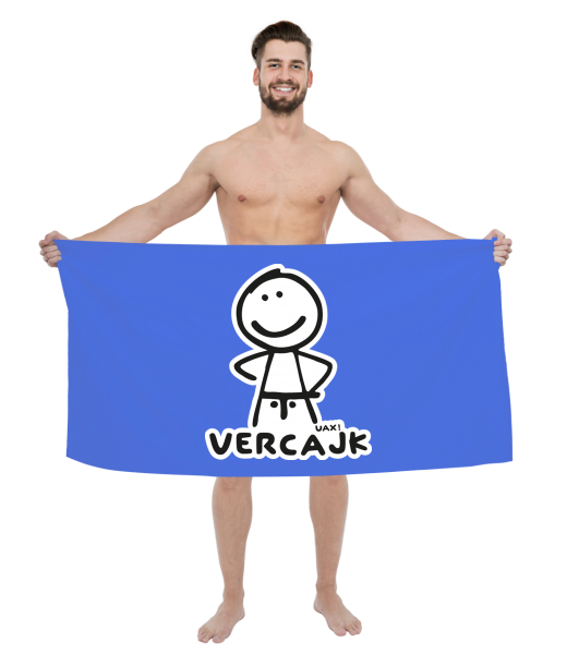 The original towel imprinted with UAX! Cycling for man with design 1125 VERCAJK in color CAPRI BLUE