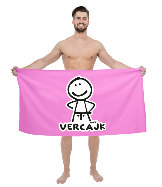 The original towel imprinted with UAX! Cycling for man with design 1125 VERCAJK in color INDIAN LILA