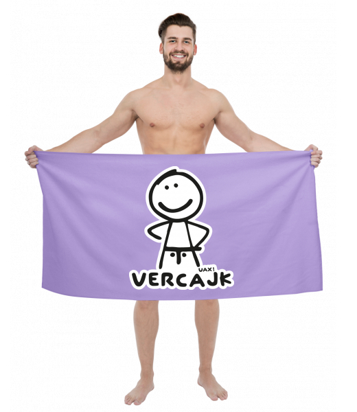 The original towel imprinted with UAX! Cycling for man with design 1125 VERCAJK in color LAVENDER