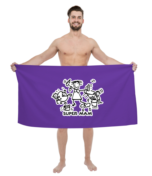 The original towel imprinted with UAX! Cycling for man with design 1126 SUPER MAM in color VIOLET