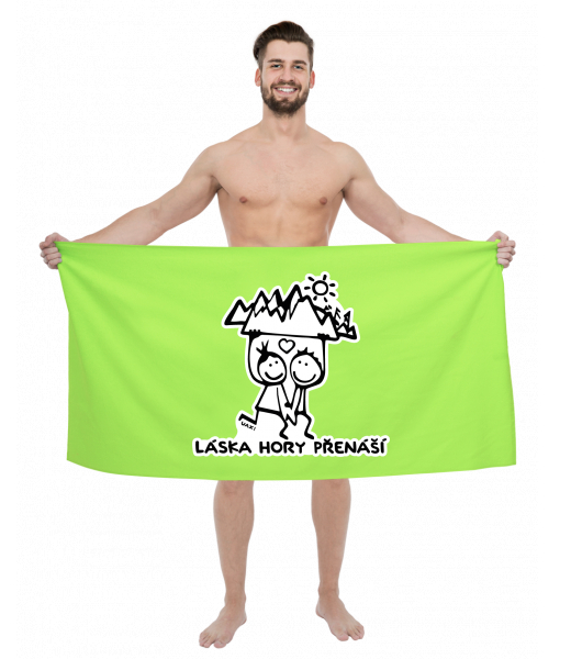 We make sustainable UAX clothing! - hand sewn in the Czech Republic uaxMen uaxCyclingTowelsPRINTED BIG TOWELSdesign 1128 - LÁSKA HORY PŘENÁŠÍFLUO GREEN