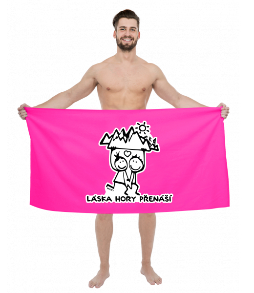 We make sustainable UAX clothing! - hand sewn in the Czech Republic uaxMen uaxCyclingTowelsPRINTED BIG TOWELSdesign 1128 - LÁSKA HORY PŘENÁŠÍFLUO PINK