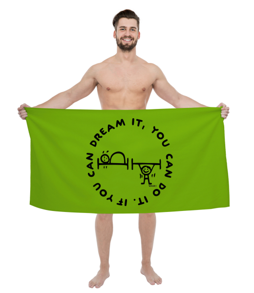 The original towel imprinted with UAX! Cycling for man with design 1133 IF YOU CAN DREAM IT in color PARROT GREEN
