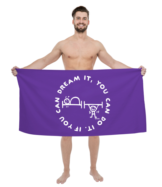 The original towel imprinted with UAX! Cycling for man with design 1133 IF YOU CAN DREAM IT in color VIOLET