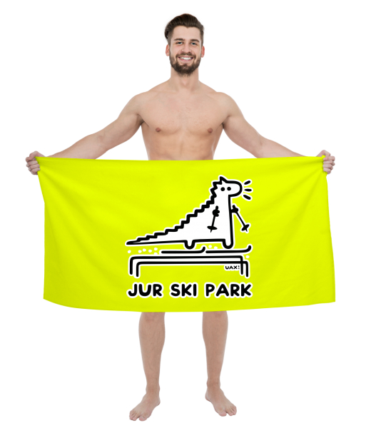 The original towel imprinted with UAX! Cycling for man with design 1277 JUR SKI PARK in color GREEN LIMET