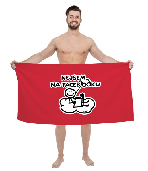 The original towel imprinted with UAX! Cycling for man with design 1282 NEJSEM NA FACEBOOKU in color RED