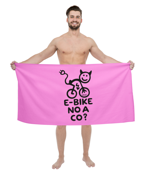 The original towel imprinted with UAX! Cycling for man with design 1291 E-BIKE NO A CO? in color INDIAN LILA