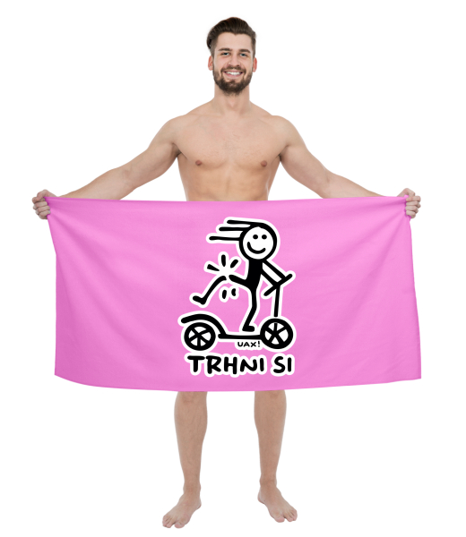The original towel imprinted with UAX! Cycling for man with design 1357 TRHNI SI NOHOU in color INDIAN LILA