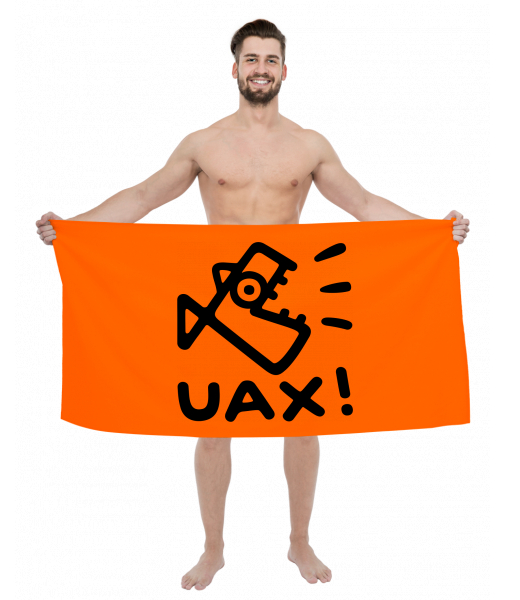The original big towel imprinted with UAX! For printing big towels we use dye-sublimation technology guarantees excellent color saturation and an extensive range of colors. Big Towels UAX! We print on one side (the other side remains white and is used to blow-dry). One side of the big towel is 100% cotton for the drying of a second side big towel is 100% PES at that print printing! Wash at 60°C