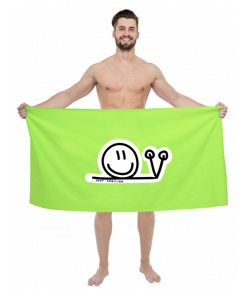We make sustainable UAX clothing! - hand sewn in the Czech Republic uaxMen uaxCyclingTowelsPRINTED BIG TOWELSdesign 420 - KEEP SNAILFLUO GREEN