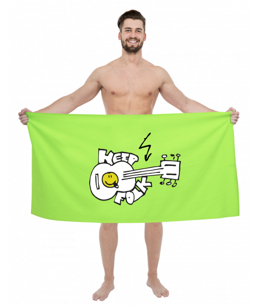The original towel imprinted with UAX! Cycling for man with design 441 KEEP FOLK in color FLUO GREEN