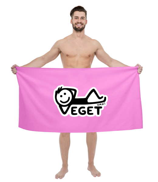 The original towel imprinted with UAX! Cycling for man with design 468 VEGET in color INDIAN LILA
