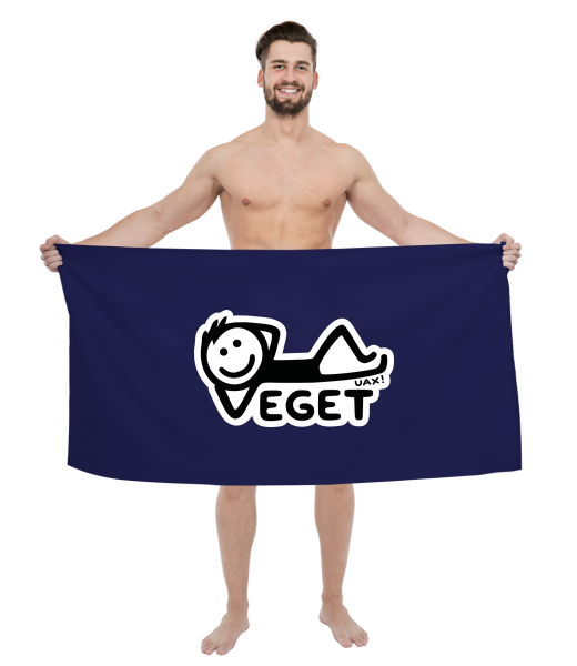 The original towel imprinted with UAX! Cycling for man with design 468 VEGET in color MIDNIGHT BLUE