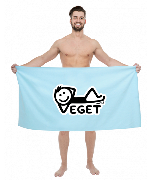 The original towel imprinted with UAX! Cycling for man with design 468 VEGET in color PASTEL BLUE