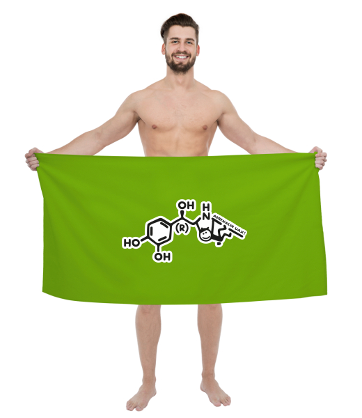 The original towel imprinted with UAX! Cycling for man with design 470 ADRENALIN in color PARROT GREEN