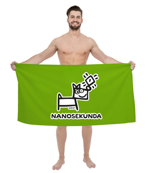 The original towel imprinted with UAX! Cycling for man with design 516 NANOSEKUNDA in color PARROT GREEN