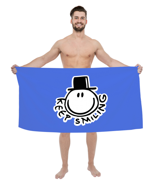 We make sustainable UAX clothing! - hand sewn in the Czech Republic uaxMen uaxCyclingTowelsPRINTED BIG TOWELSdesign 517 - KEEP SMILINGCAPRI BLUE