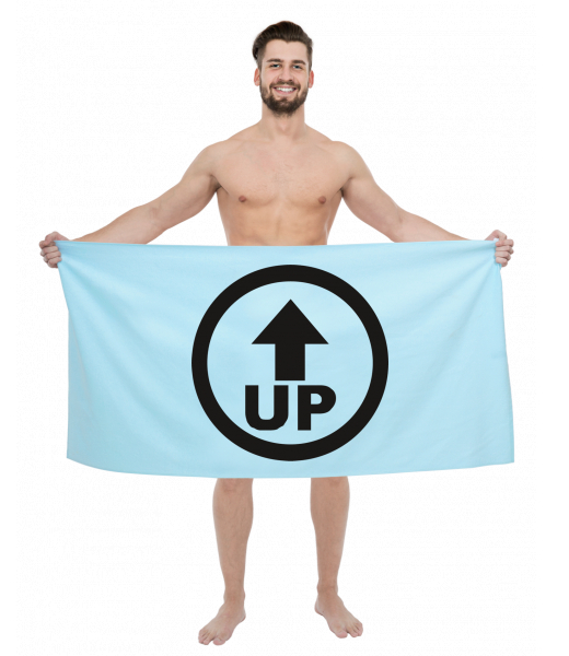 The original towel imprinted with UAX! Cycling for man with design 619 UP in color PASTEL BLUE
