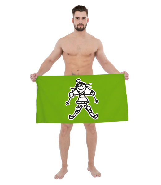 The original towel imprinted with UAX! Cycling for man with design 1179 SKIER GIRL in color PARROT GREEN