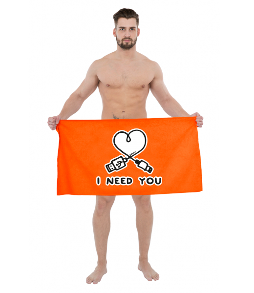 The original towel imprinted with UAX! Cycling for man with design 1206 I NEED YOU 2 in color SIGNAL ORANGE